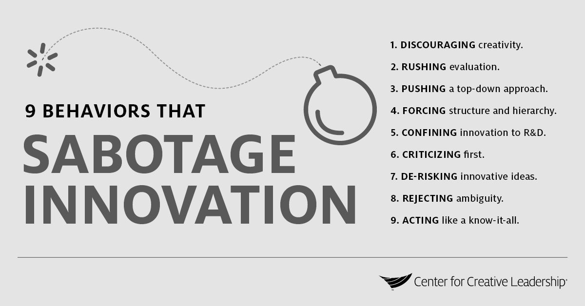 Encouraging innovation and risk-taking requires more than simply avoiding these 9 innovation-sabotaging behaviors. But if your organization has tried to cultivate a culture of innovation and failed, consider whether these unintentional behaviors may be part of the problem.