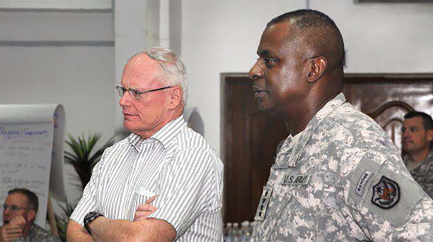 “I knew we had to build a team of teams with the ambassador and the embassy,” Austin says. “If we worked at cross-purposes, it would be nearly impossible to accomplish both of our mission sets.”